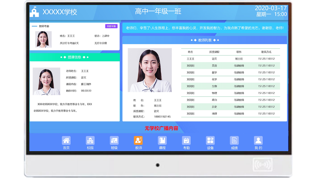 對所在班級的課程安排以及學校的作息時間的展示,讓師生合理安排時間,增強時間觀念。
